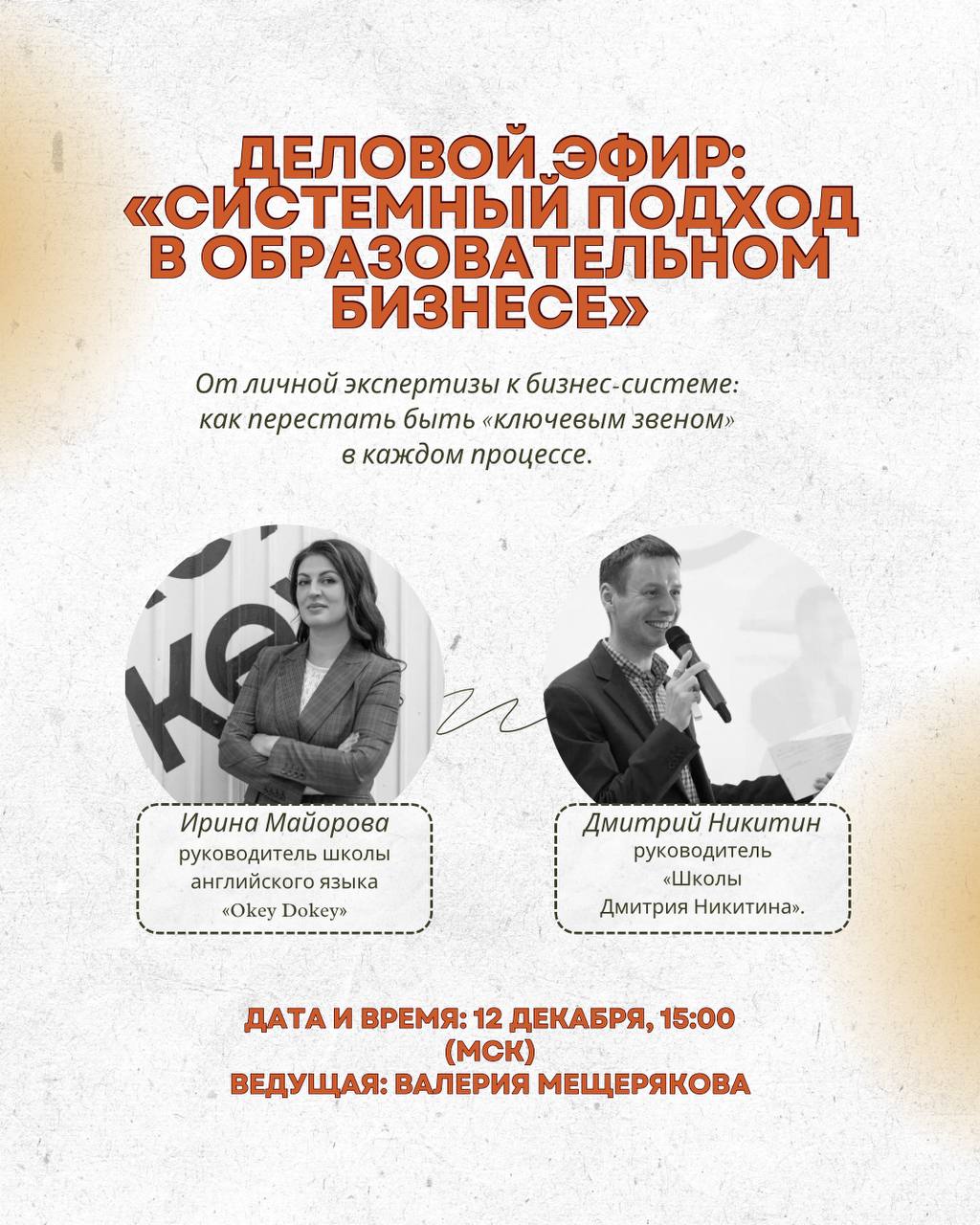 Эфир будет полезен тем, кто хочет вывести свой проект на новый уровень, делегировать операционные задачи и сосредоточиться на стратегическом развитии.